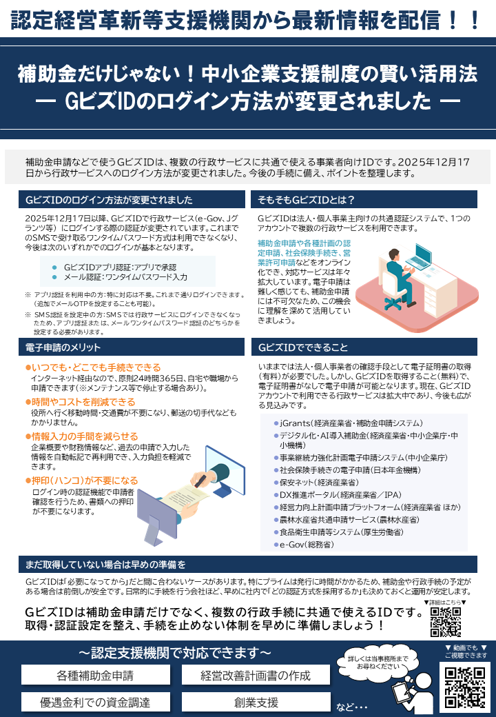 【2026年4月ニュースレター】補助金だけじゃない!中小企業支援制度の賢い活用法 ― GビズIDのログイン方法が変更されました ―