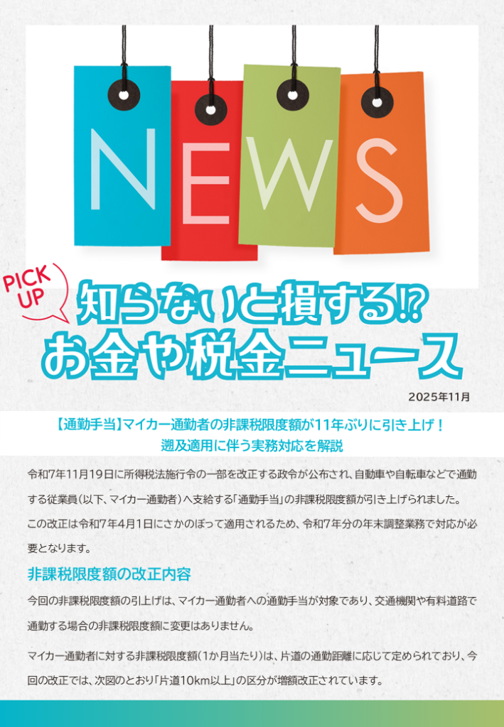 【知らないと損する!?お金や税金ニュース】通勤手当:マイカー通勤者の非課税限度額が11年ぶりに引き上げ!遡及適用に伴う実務対応を解説